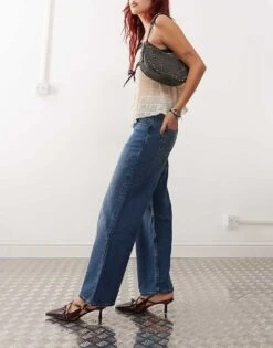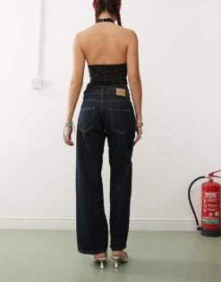 Motel Low Rise Parallel Leg Jeans In Washed Black Grey For Women
