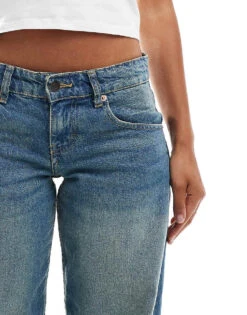 Motel Parallel Leg Low Rise Jeans In Vintage Blue Green For Women