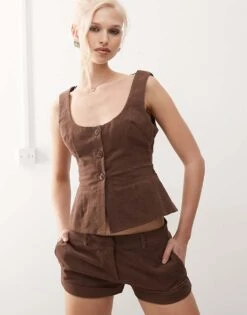 Motel Wasic Straight Leg Trousers In Black Grey Co-ord For Women