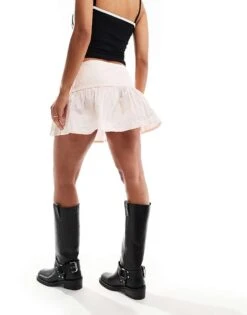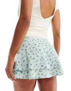 Motel Exclusive Luiso Tiered Ditsy Print Mini Skirt In Pale Blue For Women Pretty Petal Green