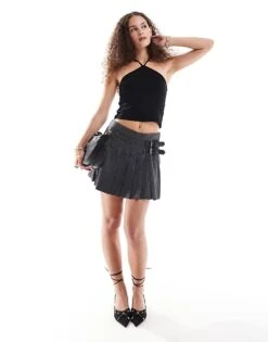 Motel Layti Classic Halter Top In Black For Women