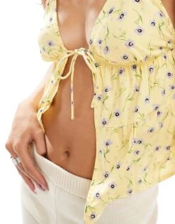 Motel Exclusive Nenita Rose Print Ruffle Cami Mini Dress In Black For Women Flowing Roses Black
