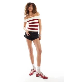 Motel Exclusive Tavi Ditsy Print Off-shoulder Mini Dress In Blue For Women Pretty Petal Green
